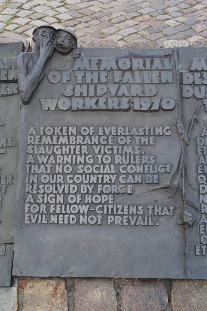 But then again it remembers shipyard workers who gave their lives to free Poland from Communism. The movement that started in the ship yards of Gdansk was a struggle of life and blood and ended with the collapse of communism as it was. The hard brutality is quite appropriate.