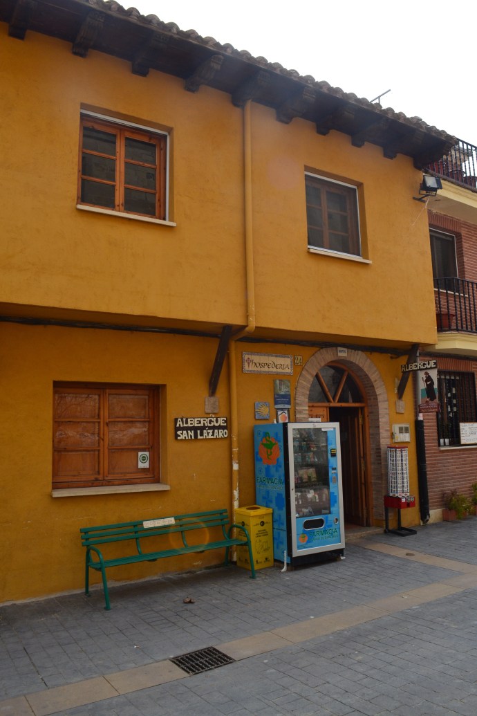 There is a dispensing machine outside the albergue. It doesn’t dispense soft drinks or chocolate bars. It’s a ‘farmacia’ machine for pilgrims, with blister medications, knee supports, and anti inflammatory ointments. No bags of crisps in there!