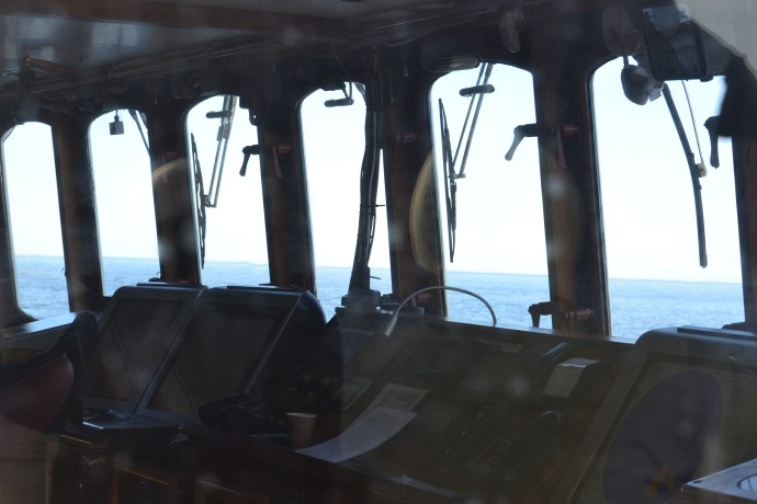 Our boat was built in 1965 but there is no flashy aluminium or gold. There are no pools, evening entertainment, bingo, pokies and the rest. There is plenty of wood and brass. It is a working vessel that loads and unloads by crane. None of this fancy “roll on roll off.” There are no stabilisers so it gets quite a roll on the open ocean. Although you aren’t allowed in the wheel house you can stand next to it and get a captain’s eye view.